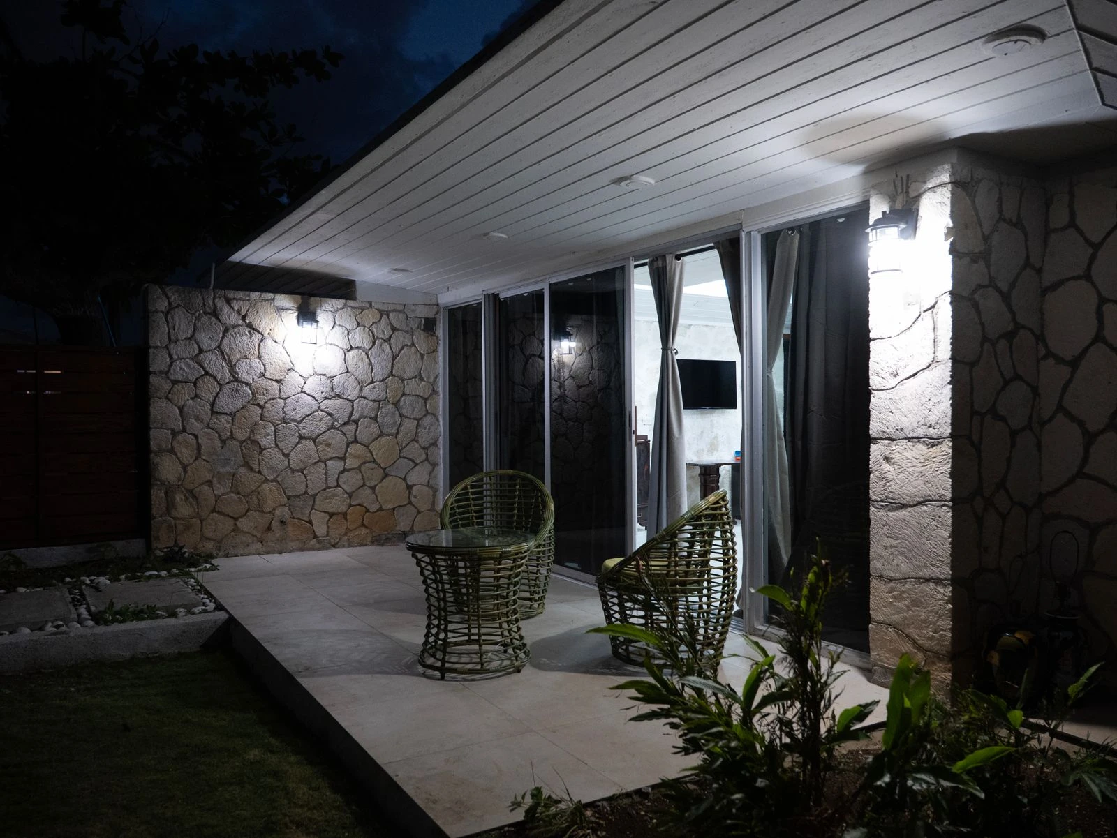 - —Tropical garden surroundings